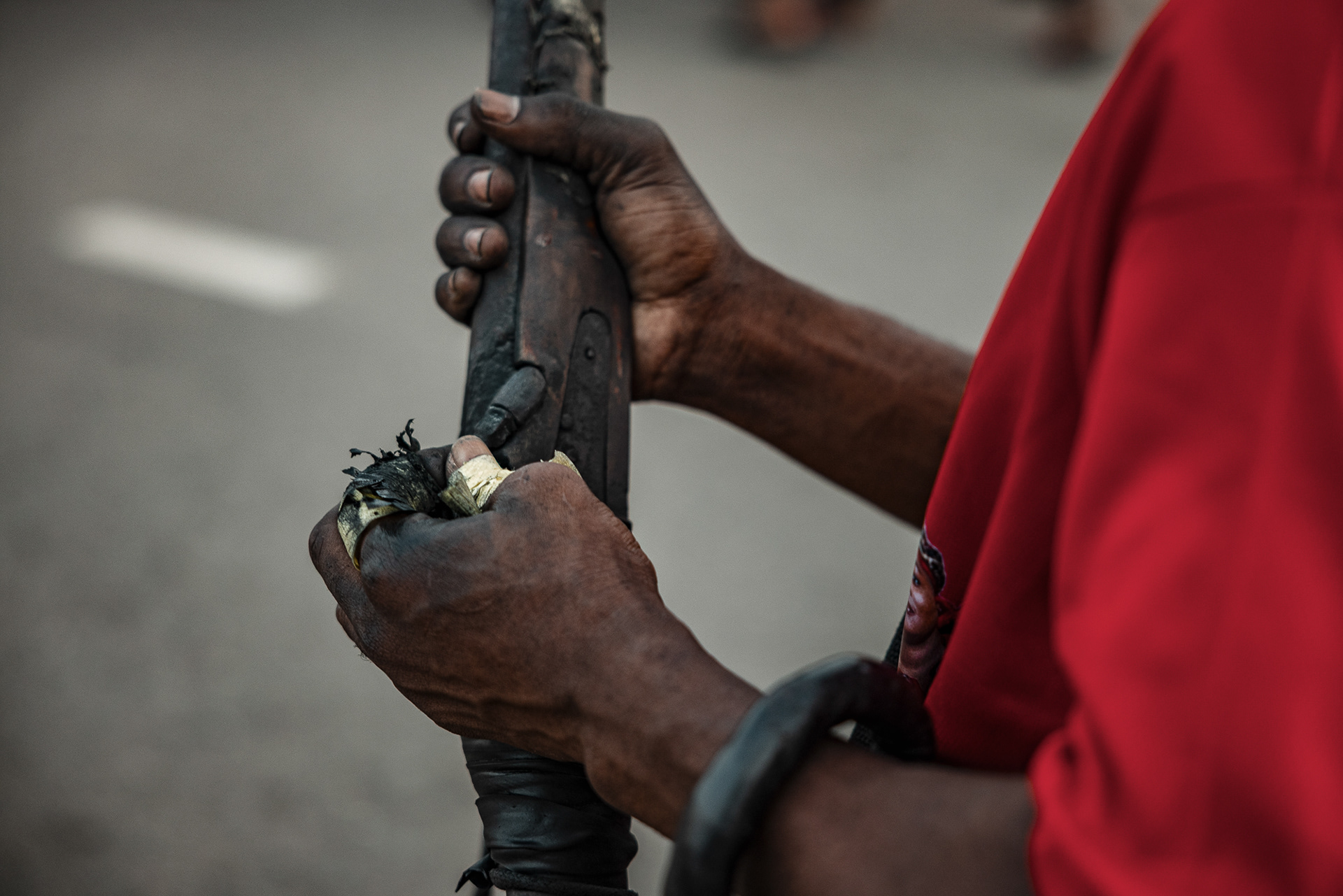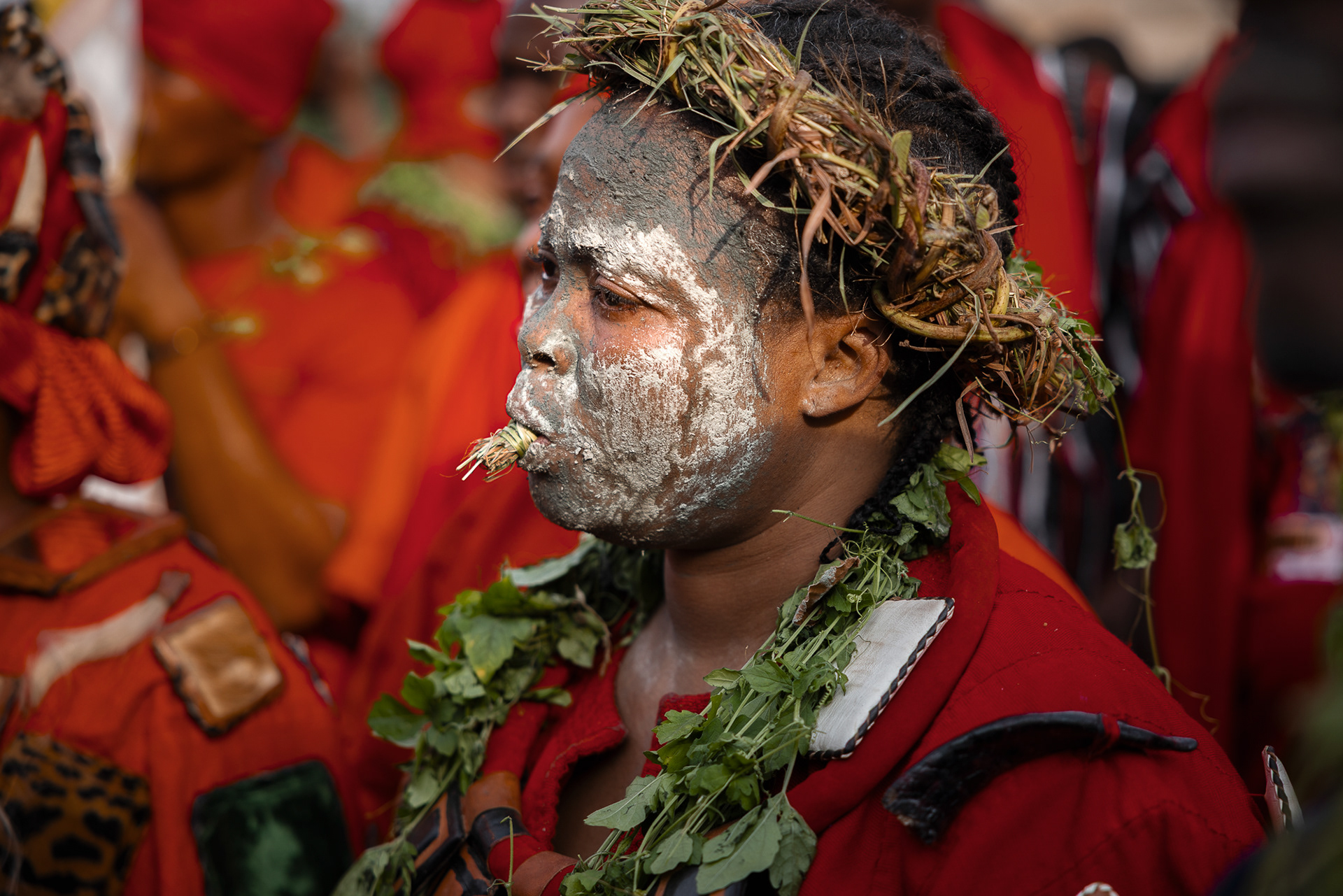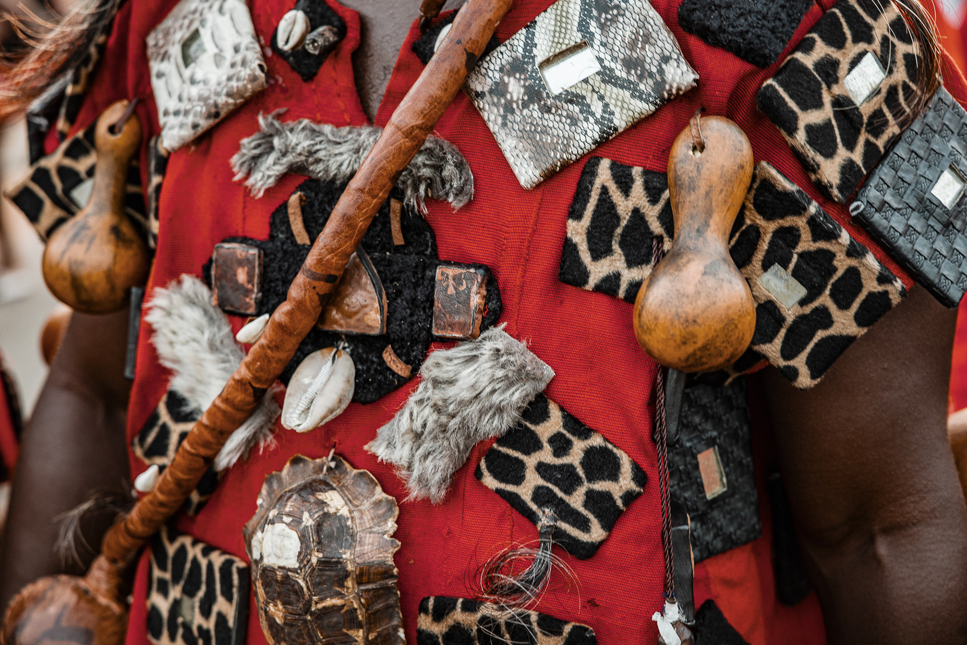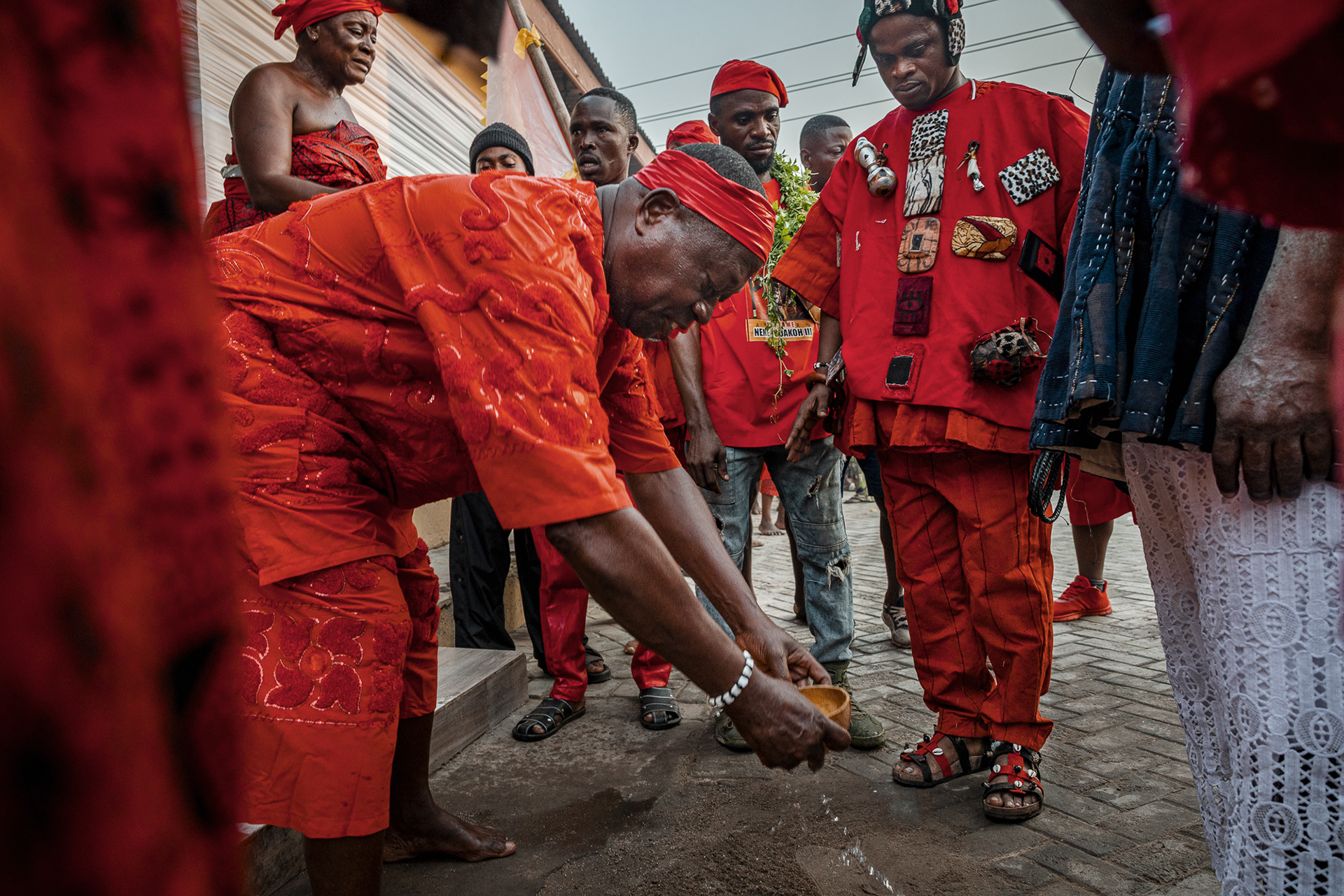 The four-day inauguration ritual begins with a symbolic hunt. Warriors dressed entirely in red — a colour associated with war and protection — search for the chosen leaders. Firearms are carried as ceremonial symbols of readiness to defend the community. Once found, the future leaders are taken to a sealed, secret space where they are fed and instructed by senior chiefs on their responsibilities and obligations.